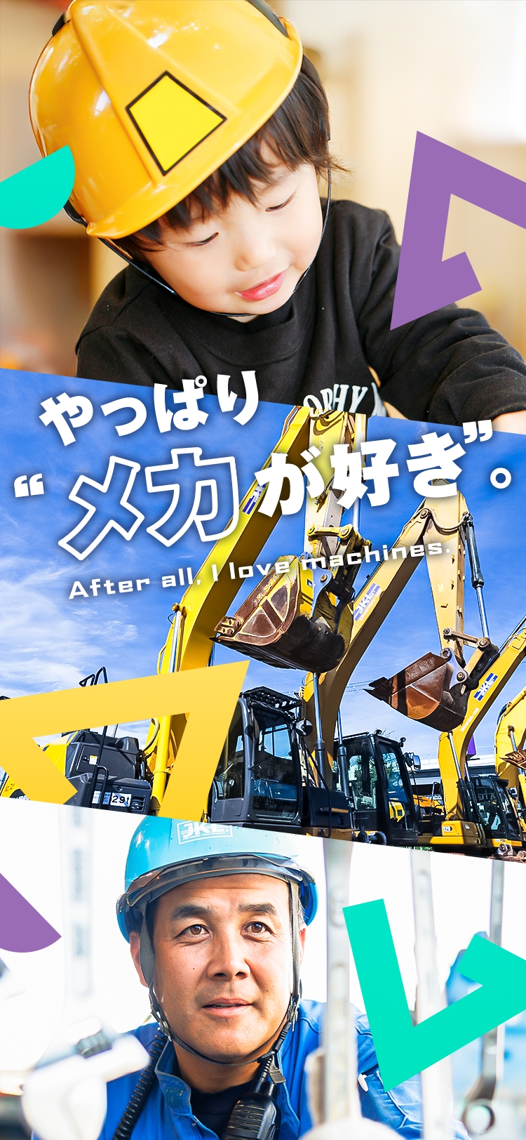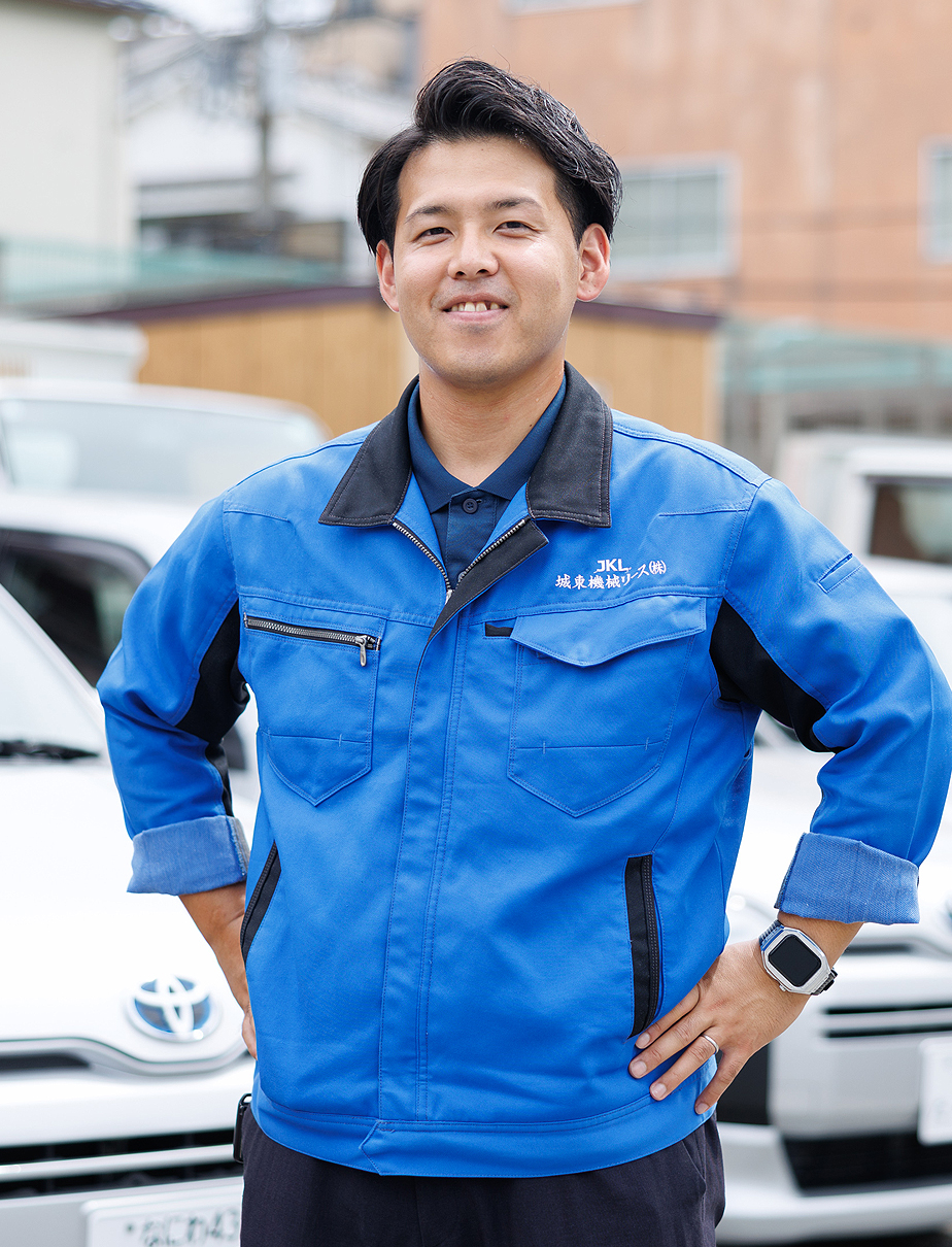 子どものころ、大きな機械を見るとウズウズした。 その格好良い姿をいつまでも見ていられたし、ずっと触っていられたんだ。 いつの日か大人になった。“メカが好き”なことは、大人になっても変わらない。 子どもっぽい理由で仕事を選んではダメだと思ったけど、 いろんな機械がある城東機械リースなら、“メカが好き”が理由でもいいと思った。