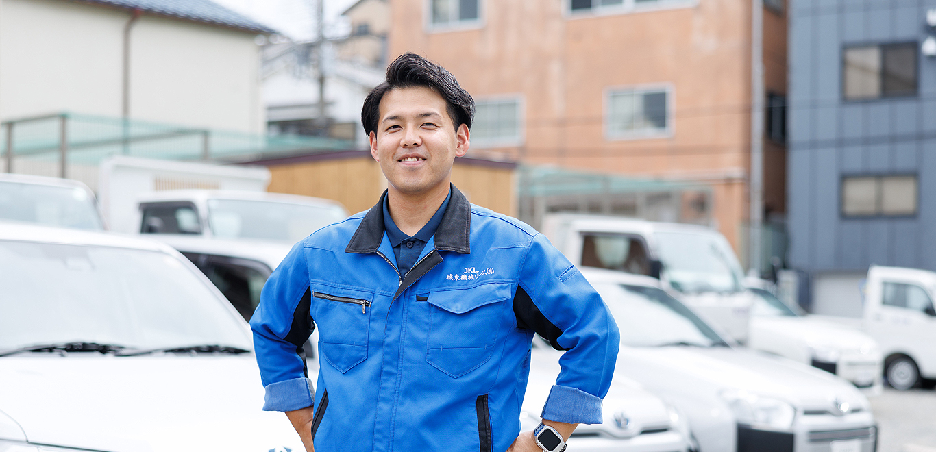 前職では神奈川で建機のレンタル営業をしていましたが、大阪に転居することになり、城東機械リースへ。当社への転職を決めたのは、社長の人間性に魅力を感じたことが大きいです。